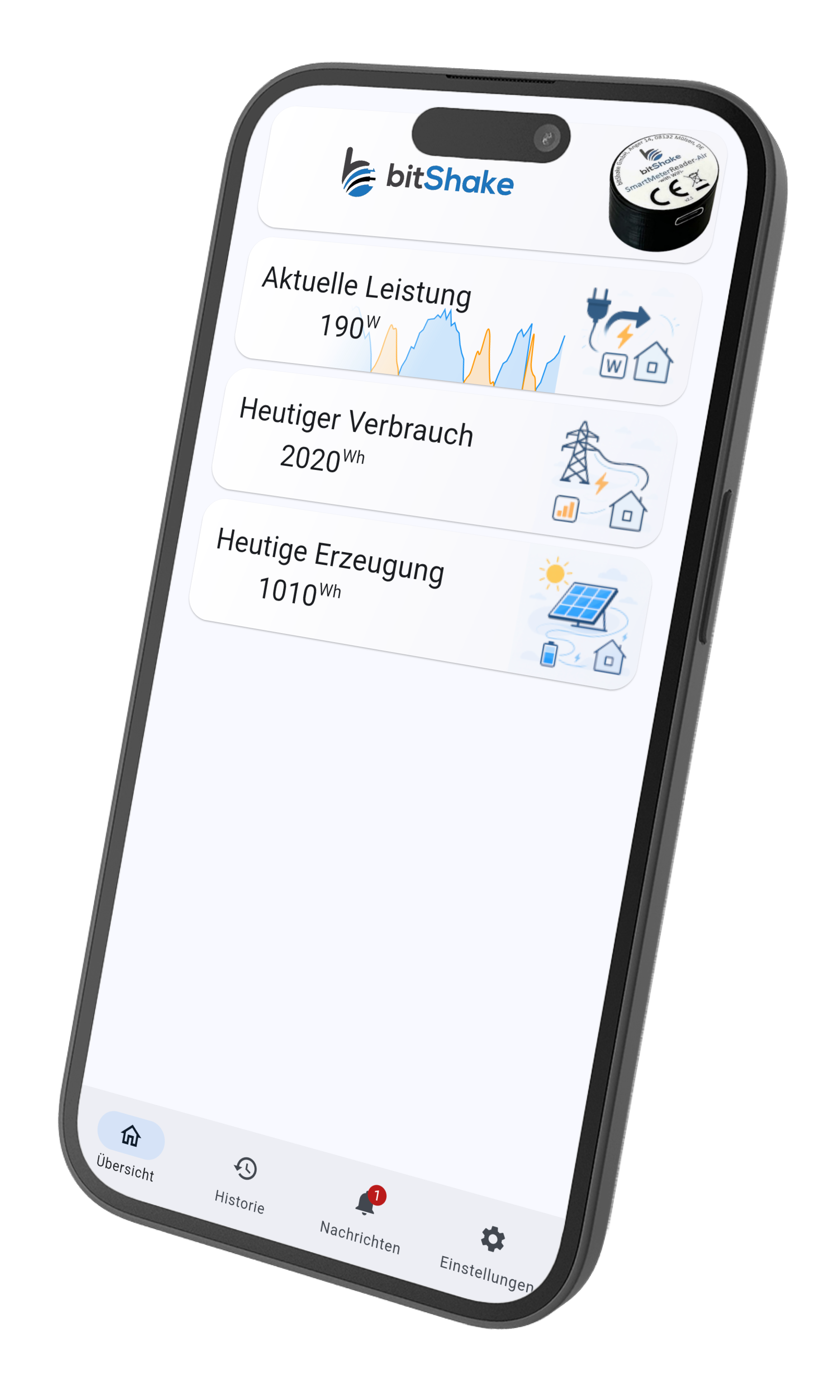 Die bitShake.app ist der perfekte Begleiter für deinen bitShake SMR Air Lesekopf. Ganz mühelos erhältst du von überall aus Zugriff auf deinen Stromverbrauch.